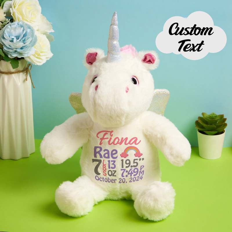 Personalized Unicorn Plush Stuffed Animal Birth Announcement Gift for Baby Shower