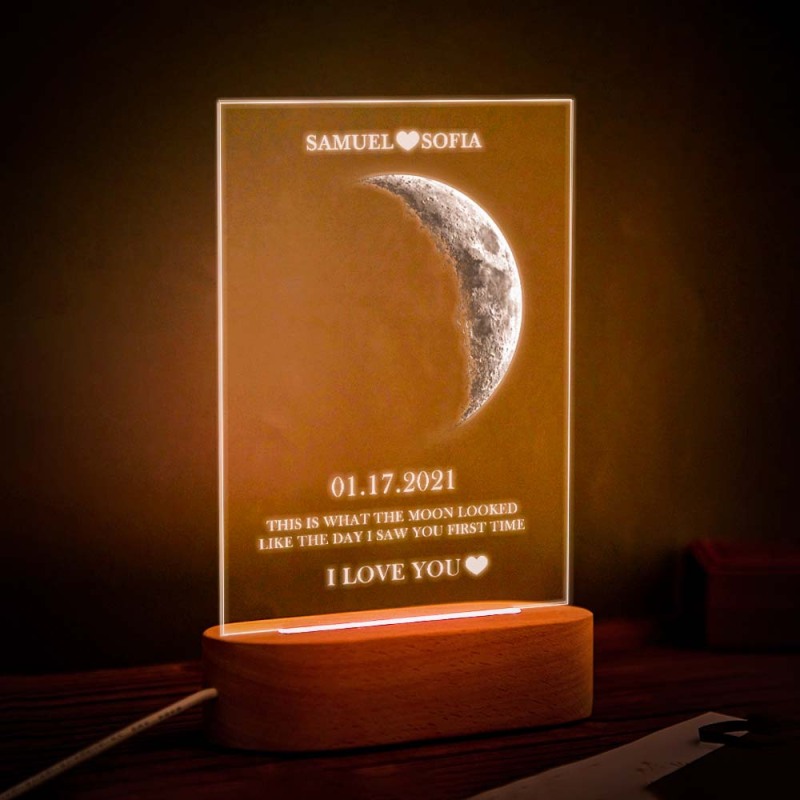 Custom Moon Phase and Names Wooden Frame with Your Text Moon Phase Gifts Collection