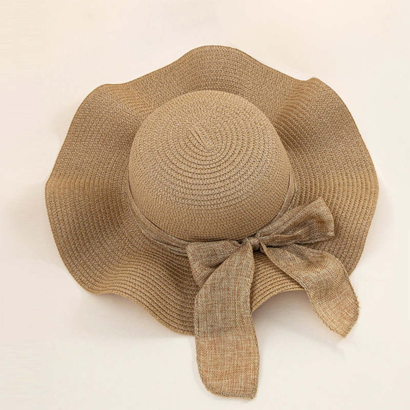 Women Straw Hat Beach Wide Brim Bow-Knot Floppy Folding Sun Hat