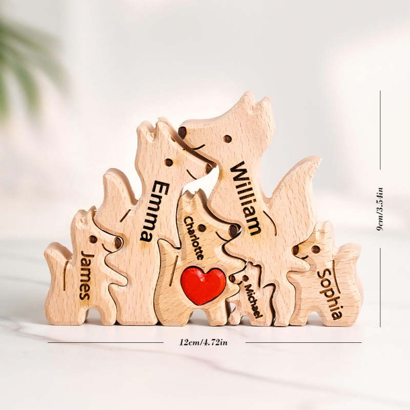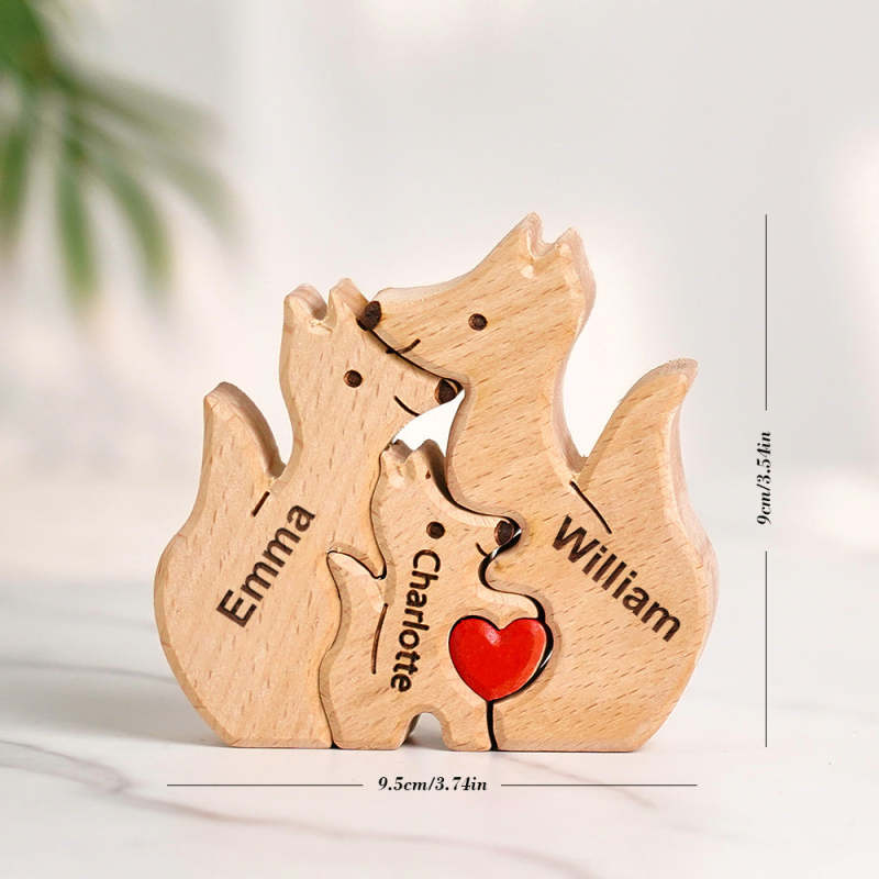 Wooden Fox Family Puzzle Custom Names House Warming Gifts